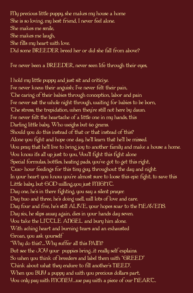 We are a small family with mom, dad, and two sons. Our friends also are interested in what we do and often will help deliver puppies or help take care of them. We have been married for over 25 years and our sons were raised with dogs all of their live. We also have 5 rescued cats and our stingray, 2 rescued greyhounds, and one bratty Chihuahua, Zumba. We have deep roots connecting us back to Ireland. I have been to Ireland twice and would encourage anyone to make a visit. Our house is constantly busy with new puppies arriving and perspective adopters stopping by for a visit.