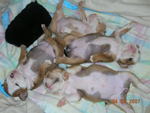 Every two hours around the clock for the first month, we were there for her, and she was there for us. Mom, Darina, tolerated us 'milking' her to provide Little D. with the best. Little D. was a fighter and soon was more than able to keep up with her siblings and did she ever! Then we finally got her to eat on her own and she was doing quite well.